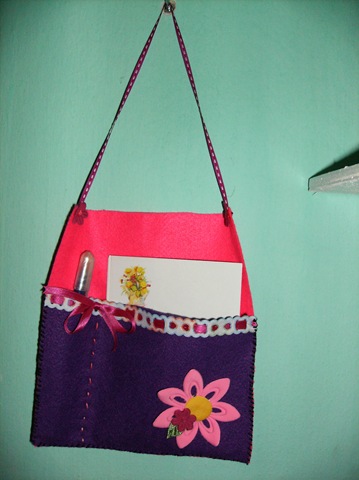 Fiz em feltro e saí aplicando umas coisinhas... é bem fácil e rápido de se fazer... fiz na sala de espera do médico, acreditam? hehehhee